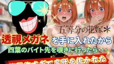 FANZA 透視メガネで四葉のバイト先を覗いてみたら・・・|サークル『正より性を』のエロ漫画|同人hitomi 『透視メガネで四葉のバイト先を覗いてみたら・・・』は、2025-09-30にリリースされた同人エロ漫画。サークル『正より性を』が手掛けた全画像500枚の大作で、FANZAでも注目を集める人気タイトルです。 2025.10.03 FANZAおっぱいアナルイラマチオフェラ中出し乳首責め天然学園もの専売巨乳成人向け正より性を男性向け裸エプロン